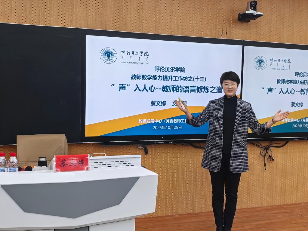 10月29日教师发展中心(党委教师工作部)在崇文楼A500教室教师教学能力提升工作坊系列讲座之《“声”入人心——教师的语言修炼之道讲座由文学院教师蔡文婷主讲。